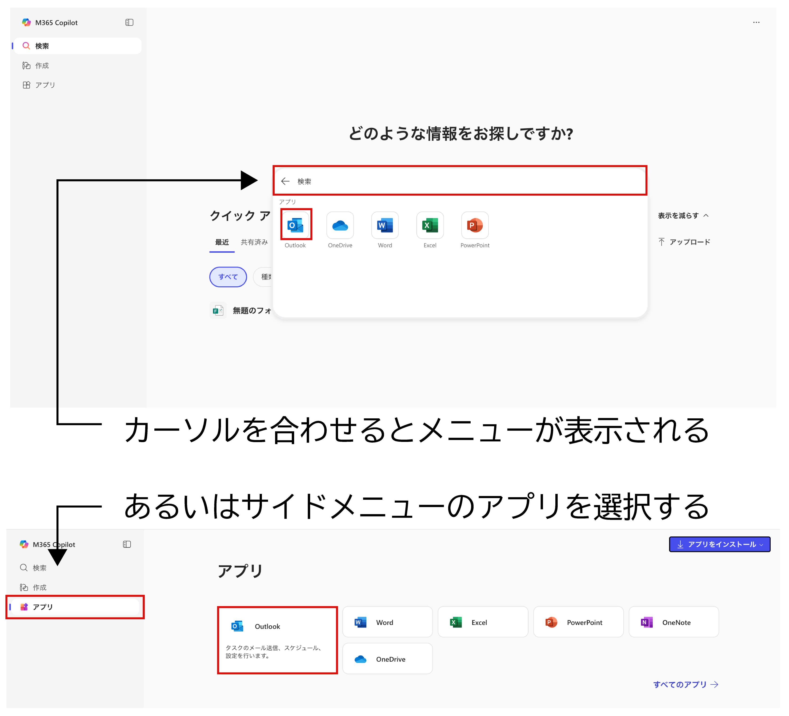 ここでは Web ブラウザのみで簡単に利用できる、Outlook on the Web からメールの送受信方法を説明します。